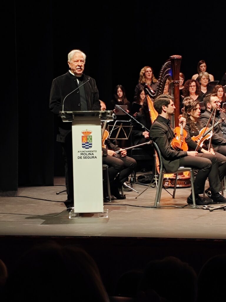 En la gala tuvimos la fortuna de contar con el magnífico actor Juan Meseguer, amigo además, ya que en la composición «Molina Eterna» hace una locución con las palabras que el propio rey Alfonso X dijo en 1272 para la concesión administravia a Molina. También participó Domingo Beltrán, historiador, que nos ilustró antes del concierto, cómo era la Molina de entonces.